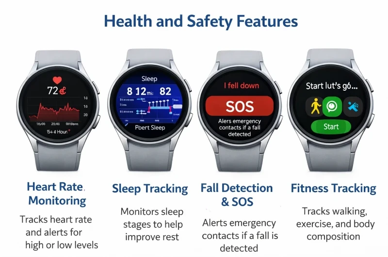 The Galaxy Watch 6 is suitable for seniors seeking advanced health features and smart functions. However, individuals preferring a simpler device might opt for more basic alternatives.